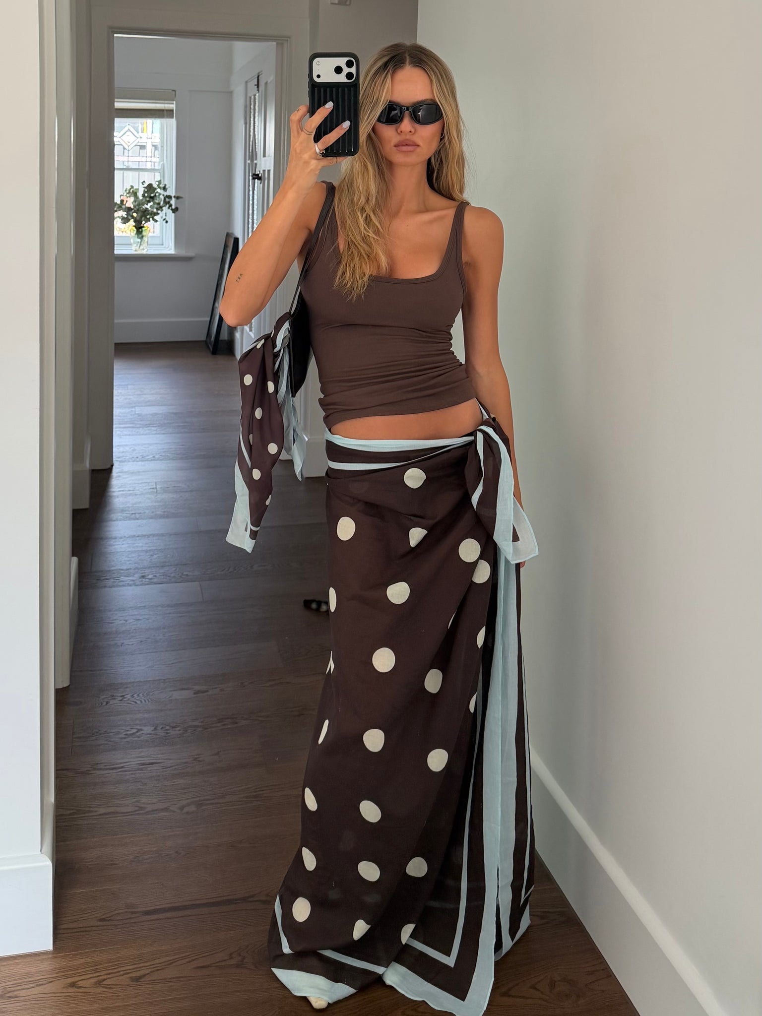 The Polka Dot Sarong in brown and blue plays with contrast - playful print meets a sleek, modern cut. Designed to sit effortlessly on the body, it’s your go-to for easy summer dressing with a hint of attitude. Pair it back or lean all the way in.